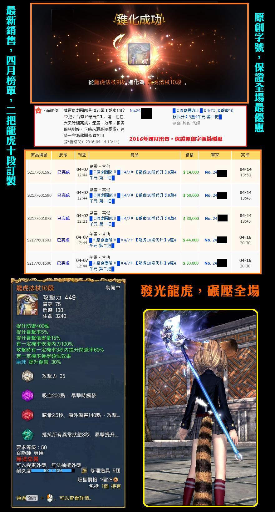★龍泉、龍虎、龍神12升級,黑白靈12材料!再度大降價! 【限時2周 ,要買要快】