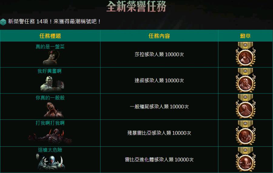 20.變異的開端........10點...50T......殭屍Z模式5次以上遊玩給予的勳章"