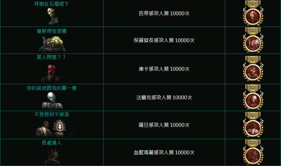 13.變身專家..........10點...50T......一回合中選擇3種以上的殭屍遊玩給予的勳章"