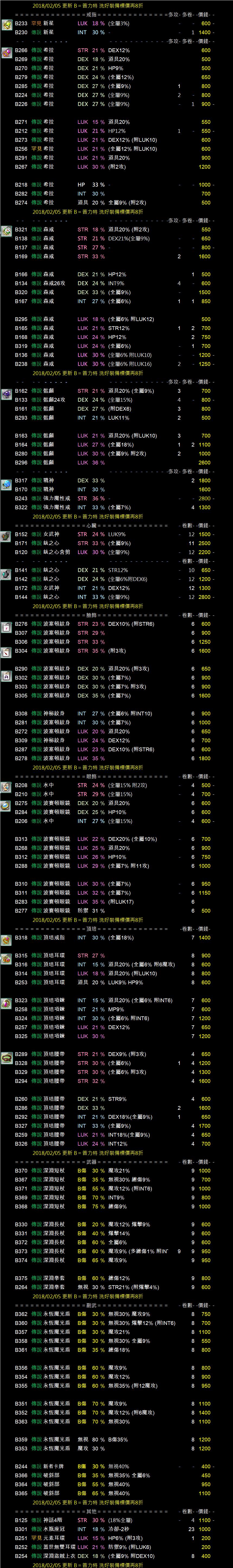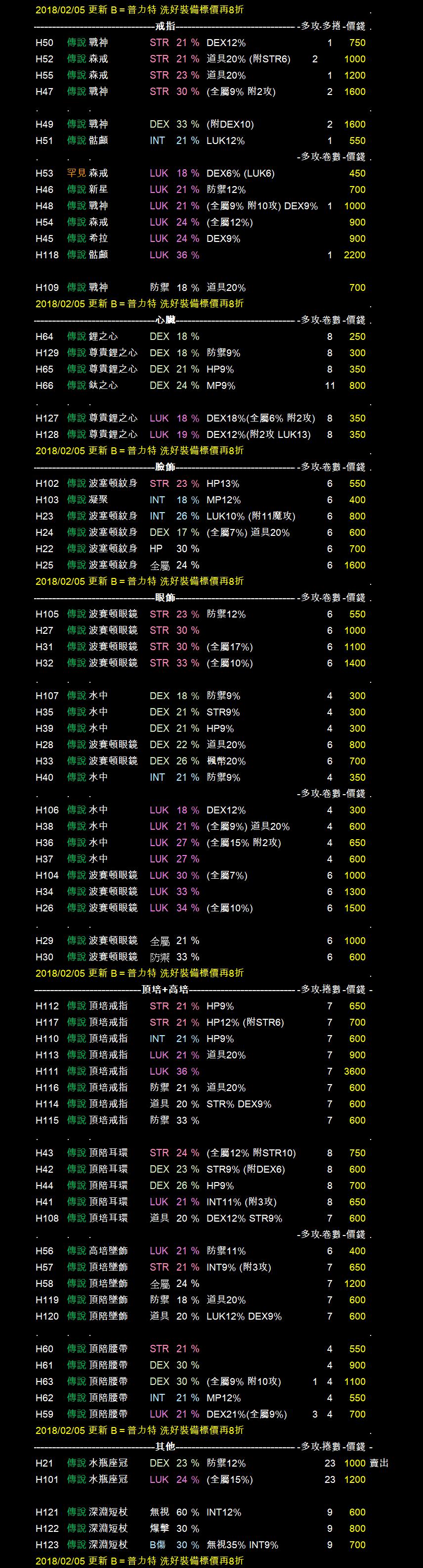 ★★★全伺服器 洗好的裝備標價再打8折★★★