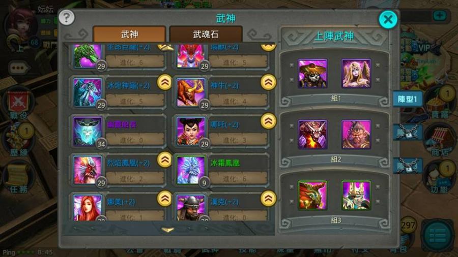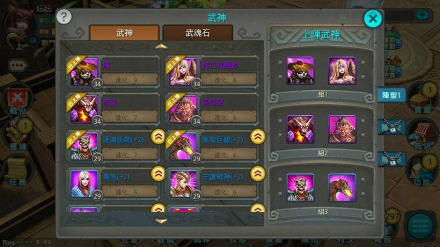 武神和人物狀況如圖 戰力10w 鑽石984個