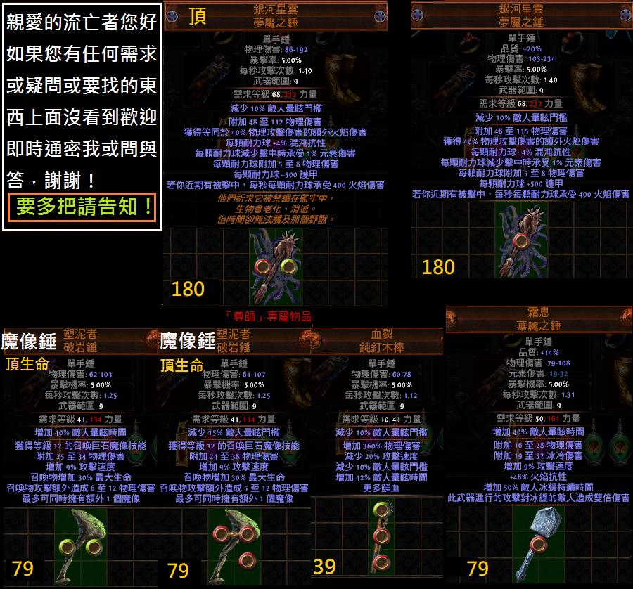 在交易時請放上一件您不需要的物品。例如武器、防具、技能石、地圖、材料、捲軸....等等