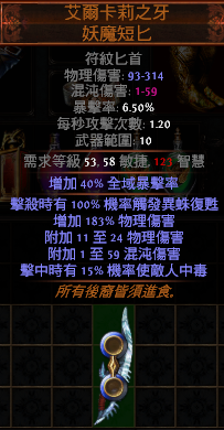 道具 【標準】 艾爾卡莉之牙 獸血短匕【擊殺時有100%機率觸發異蛛復甦】