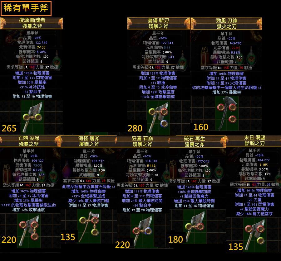 道具 【標準】 『單手斧』開膛斧、龍鳳、傑克、憤怒、鷹嘯、獅鷲、月嵐、恐懼、瑞佛、畏懼