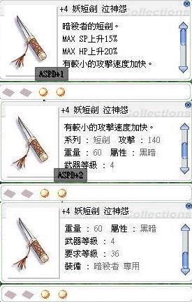 搭配銳風劍時 若精練值總合為精練每+3時 Atk+10 (精練越高 威力越猛 開心 開心)