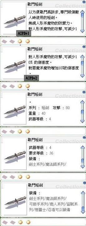 銳風劍2洞 系列-短劍 攻擊150 重量100 武器等級4 要求等級100 裝備-忍者系列