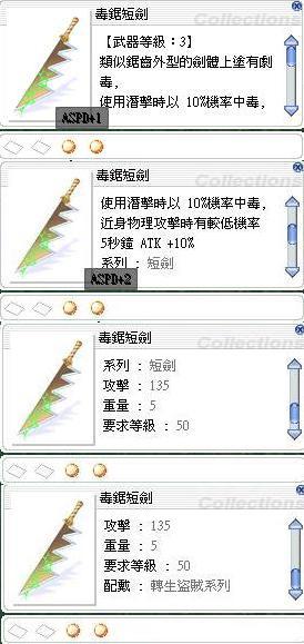 毒鋸短劍2洞 系列-短劍 攻擊135 重量5 武器等級3 要求等級50 裝備-進階盜賊系列