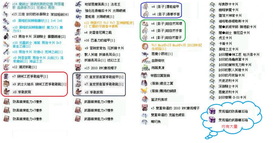 道具 王卡.+7武防捲.受祝福礦石箱.武器.防具