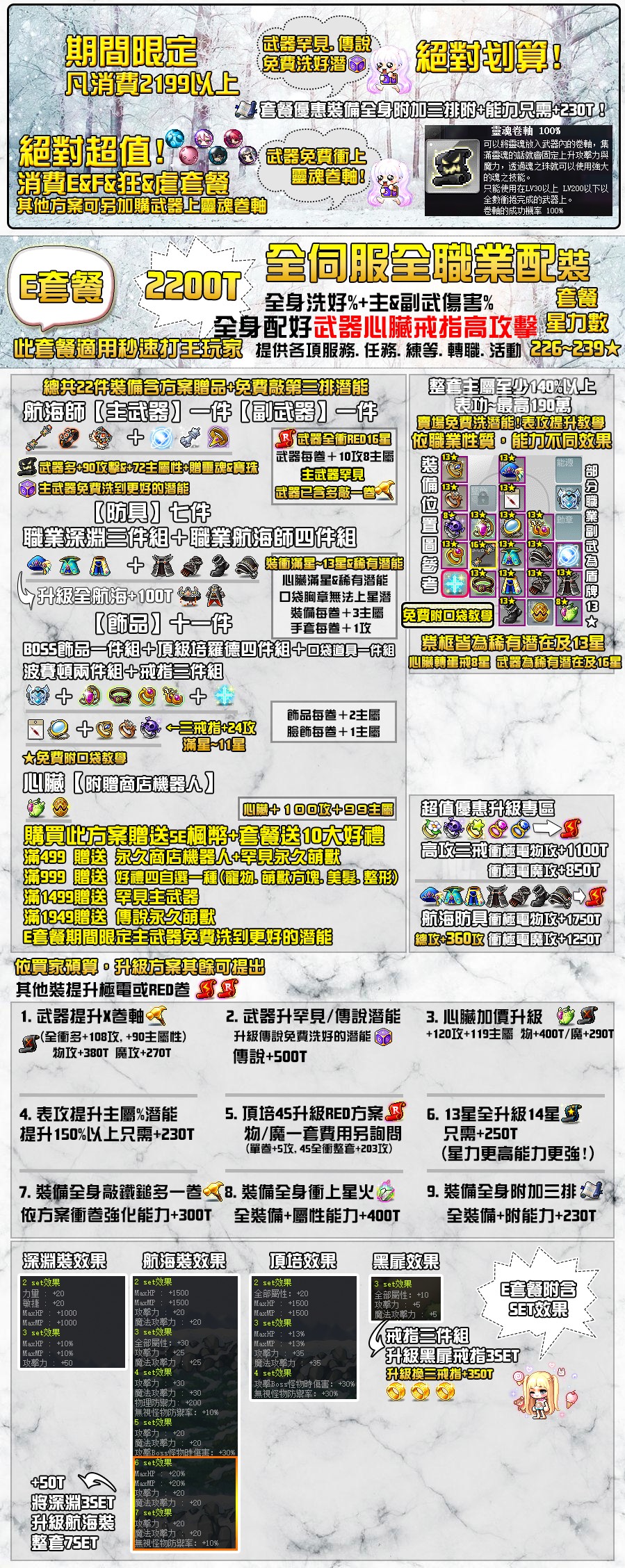 總套組懶人包(加購專區及裝備配置詳細於圖上):以下不含練等(練等僅接燃燒時段)
