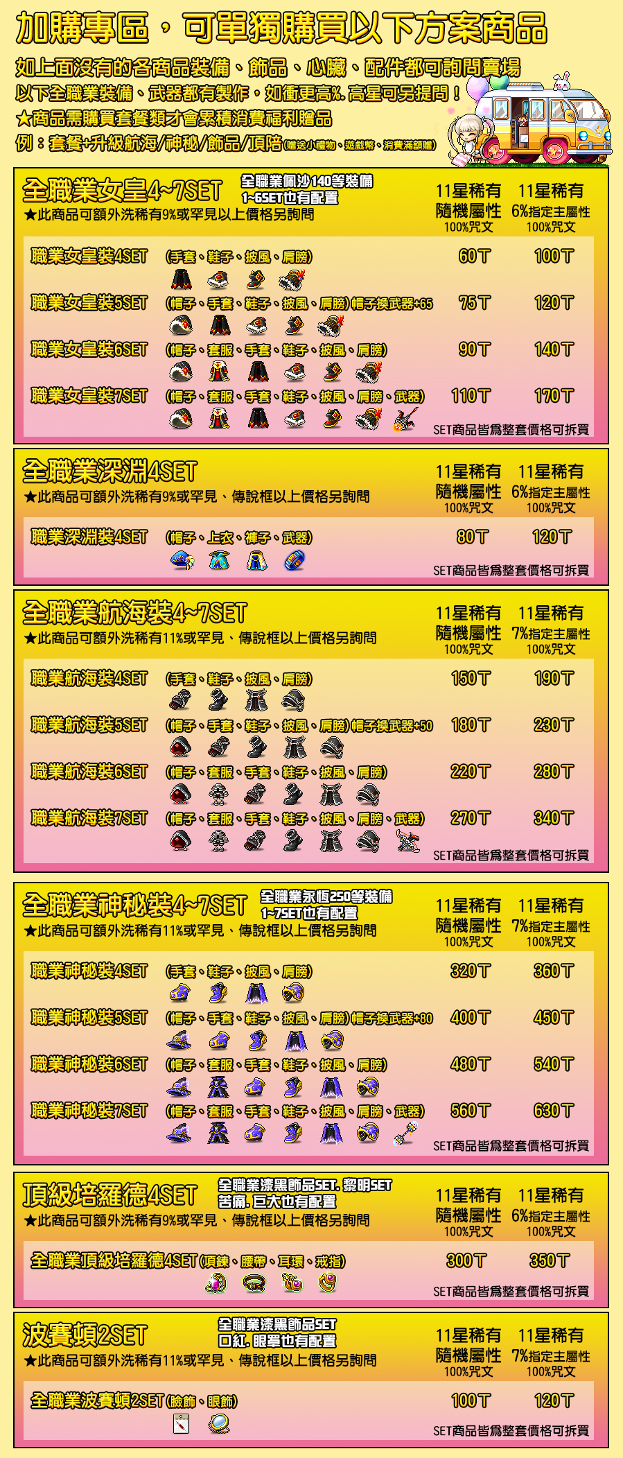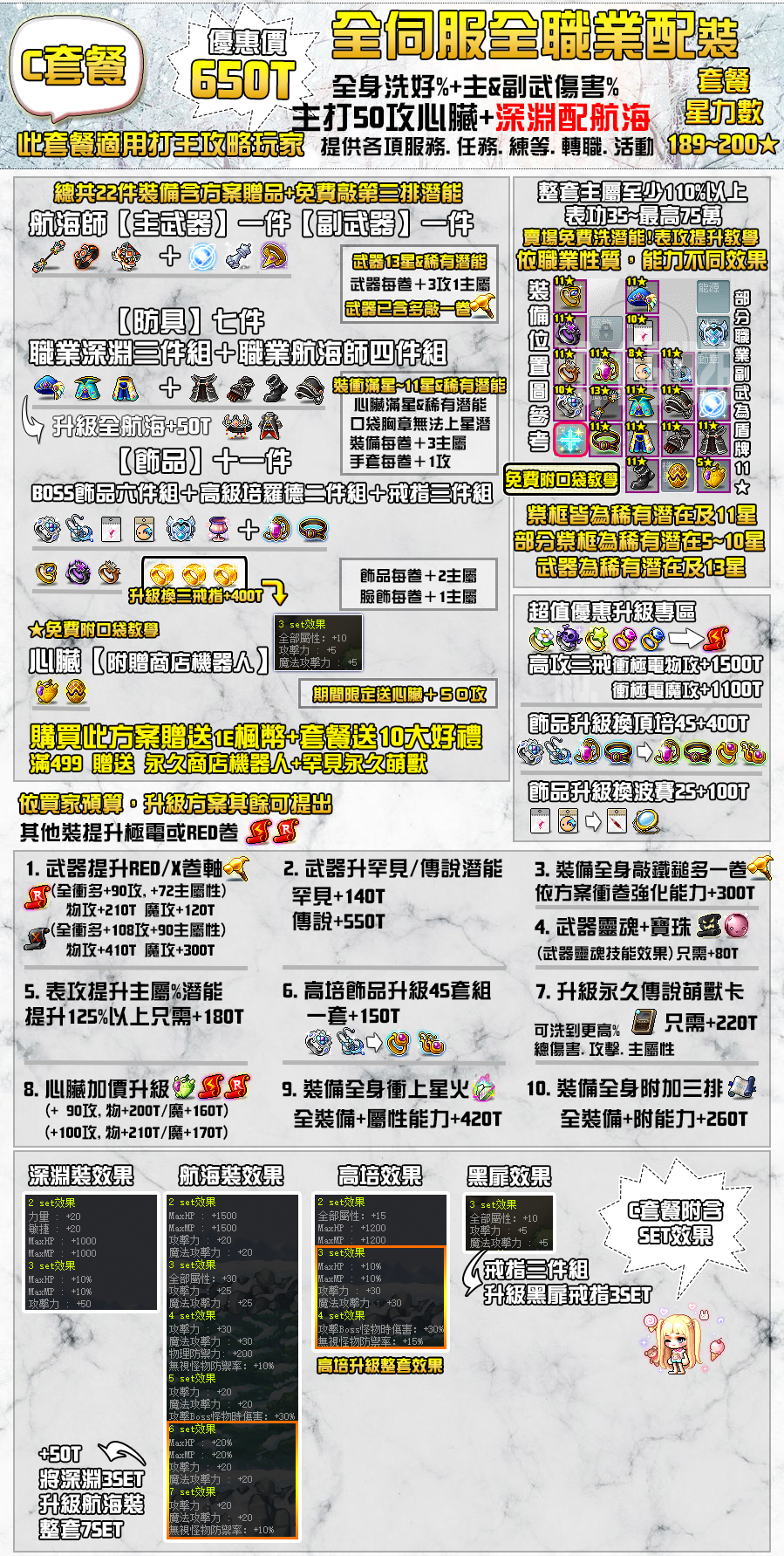總套組懶人包(加購專區及裝備配置詳細於圖上):以下不含練等(練等僅接燃燒時段)