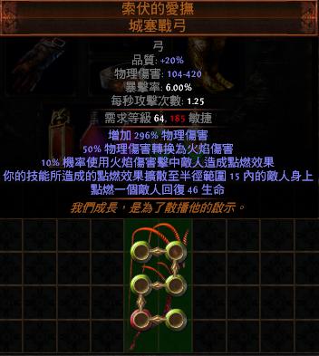 道具 【標準】 6L索伏的愛撫 城塞戰弓+399大傷【點燃效果擴散+機率點燃】物理轉火焰