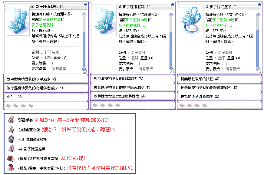 絕版附魔影子抗中抗無HP速%睡眠靴詛咒墜II藍裝頂附魔DEX+11邪靈手