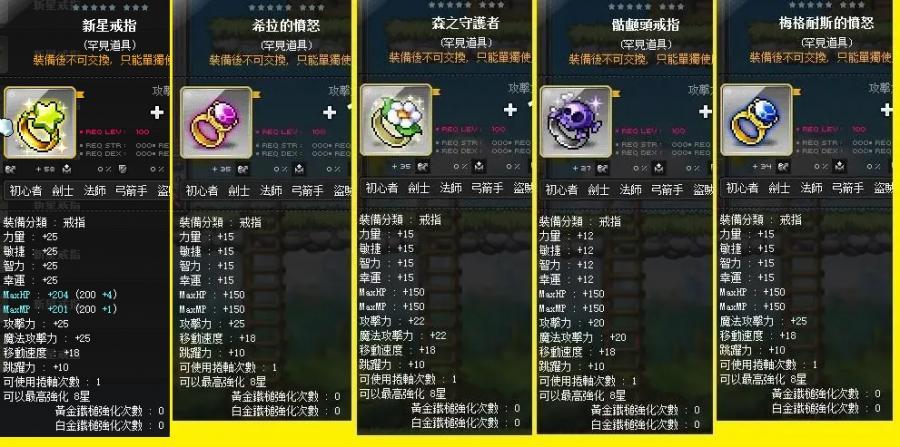 道具 罕見戒指新星戒指/希拉的憤怒/森之守護/骷顱頭/梅格奈斯的憤怒