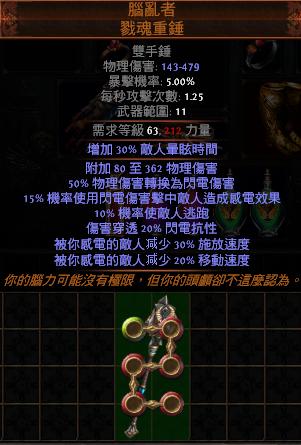 道具 【標準*】 腦亂者 戮魂重錘(6L牛頭錘)【傷害穿透20%閃電抗性+機率感電】