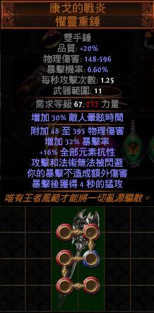 道具 【標準*】 6L康戈的戰炎 懼靈重錘+596恐怖大傷【攻擊和法術無法被閃避】猛攻