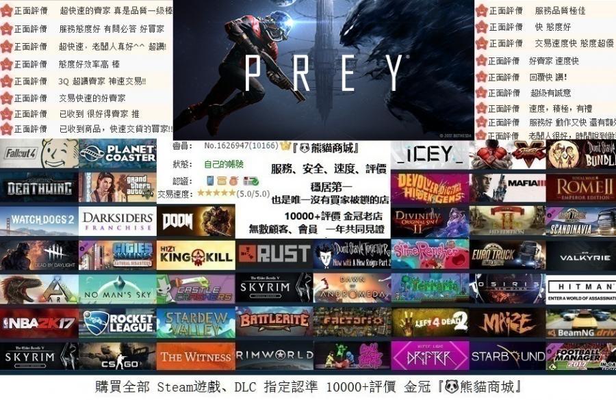 遊戲代購 『🐼熊貓商城』三金冠 快速發貨⎛獵魂 Prey⎞👑購買送遊戲+折價券👑