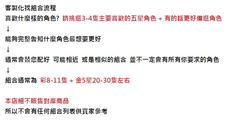 不用不用 20虹-25虹 首抽1800起 可自選角色(請參考圖片規則) 每組帳號都會附大量隨機資源及 35-50隻5星金角 不用懷疑買到賺到