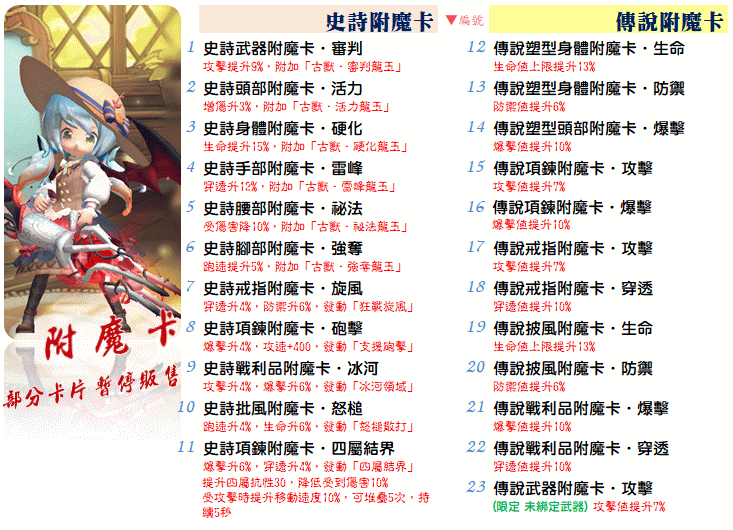 🧸史詩/傳說附魔卡