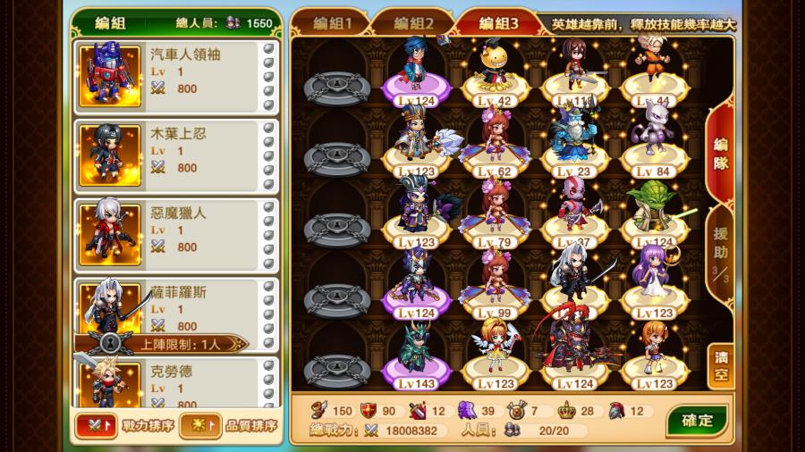另有閃金超賽戰士 閃金尤達大師 閃金炮娘 閃金智慧女神 閃金超夢 閃金三笠 閃金奎托斯 呂布 閃金綠漢 閃金木葉上忍 3個貂嬋 閃金克勞德x3 東方不敗 齊天大聖 5個睡美人 唐玄奘x2 小籠女x2 觸手老師 閃金薩菲羅斯x5 黑暗魔君 電氣鼠 金剛了蘿莉x6 太上老君x2 蒂法 九尾x2 草帽船長 閃金汽車人領袖 閃金手槍人x2 唐玄奘 惡魔獵人 CC 暗影之魔 嫦娥 黑岩射手 二郎神x2 齊天大聖x2 小櫻 3個劍聖 四個關羽 諸葛亮 司馬懿 周瑜 丘比特 2個紅孩兒 二個仙女戰士 10個鳳凰戰士 三個劉備 二個孫權 二個張飛 五個黃忠 4個曹操 三個不死狼人 巨刀死神 拔刀齋 二個卡爾 黑珍珠船長 電鋸小丑 黑無常 白無常 蜘蛛超人神鵰大俠 小籠女 爆走蘿莉 外星王子達爾 第三使徒 龜老人 絕地武士 阿盧卡多 貞子 天馬戰士 雅典娜 天龍戰士 三個馬超 二個趙雲 二個美國甜心 娜美克後裔 二個紅孩兒 寵物少年 噴火龍 火女 冰女 哮天犬 小黃人 二個奇異種子 病嬌女友 風精靈 治癒史萊姆 蠍子精 大力娃 二個鋼化人 神鵰 深淵法師 寶器娃 鐵頭娃 火精靈 拍拍熊 以上綠色不打出來