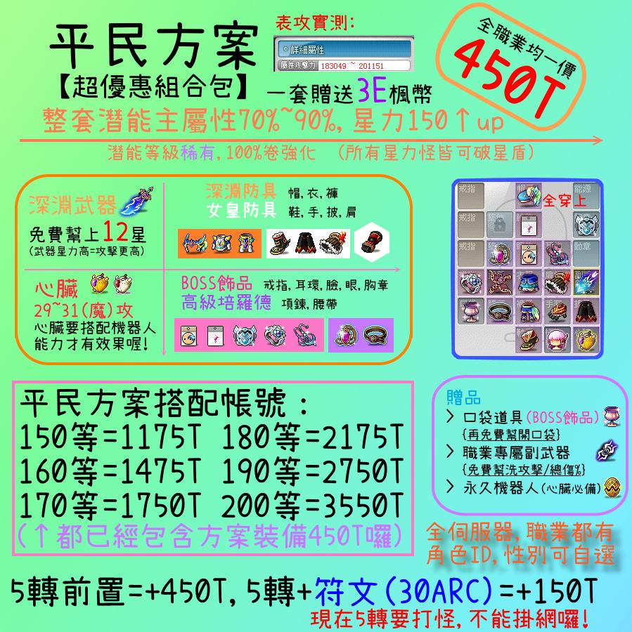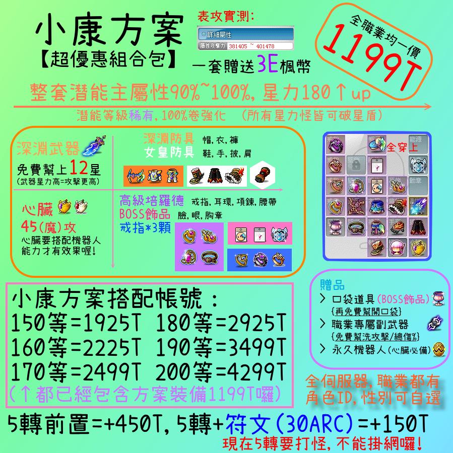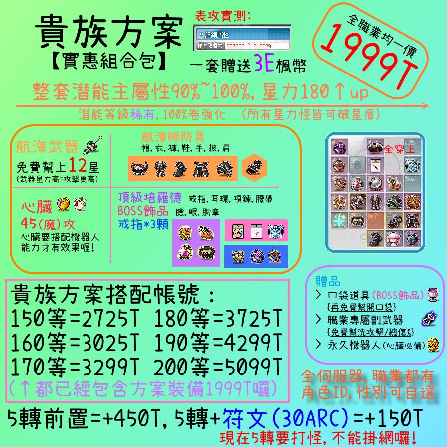 購買 等級+方案= 全身幫你屬性 讓你表攻更高喔