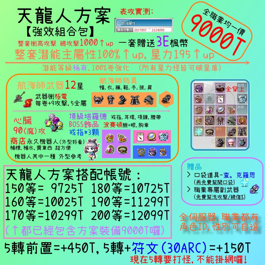 ● 範例5. 需要 天龍方案+150等角色 = 價錢表圖上有 類推 需要擠等 100~200 由買家決定