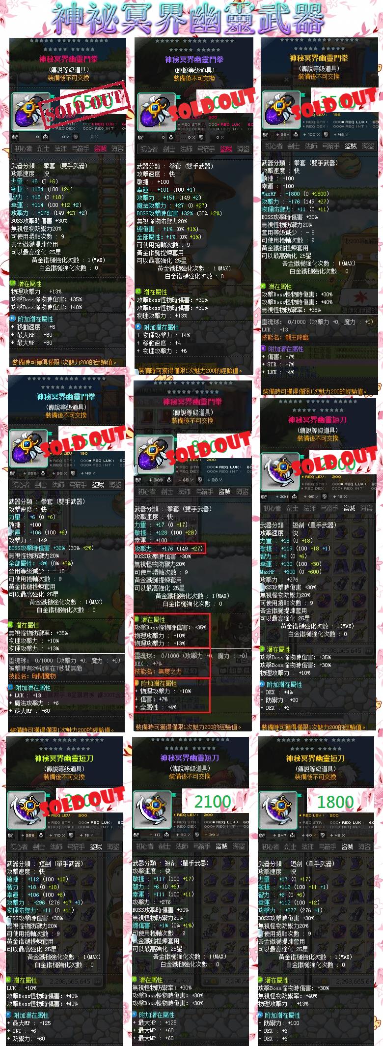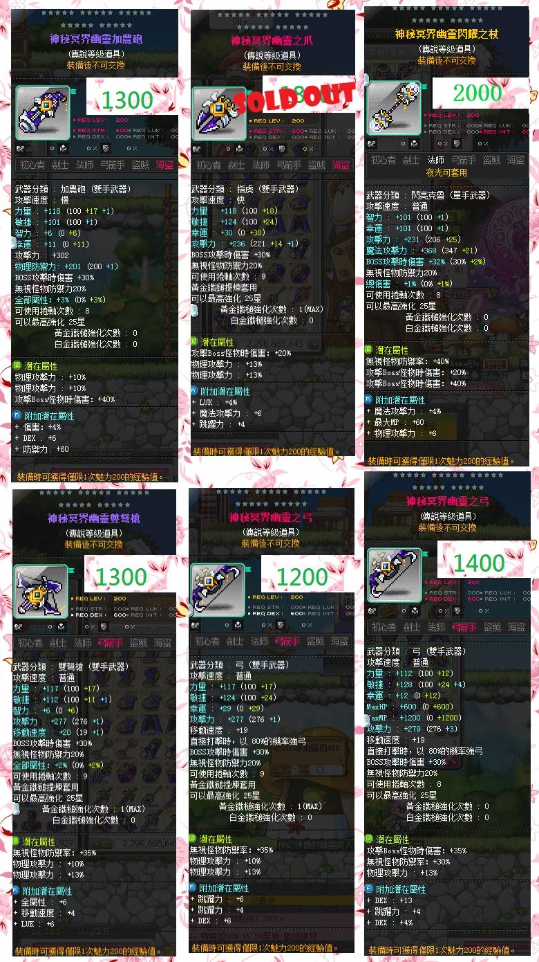 道具 ✿填空✿武器█神祕冥界幽靈鬥拳套太靈短刀矛鎖鏈扇子護腕長杖弓爪指虎能量劍200等
