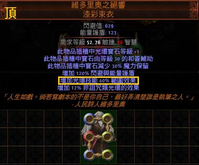 道具 【標準*】 6L維多里奧之絕響 漆彩束衣(光環衣)【頂+光環技能40%範圍效果】