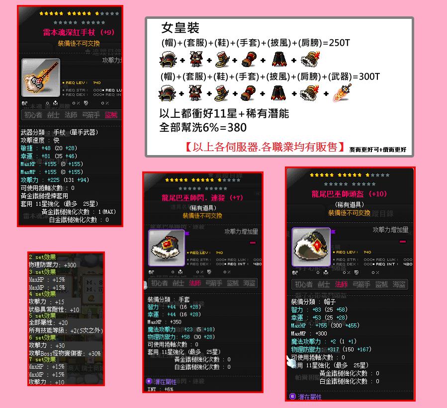 如果想要全身配好的裝備 以下有連結 點進去就到主賣場囉