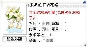 (服飾)白百合花帽 or (服飾)七彩面紗 任選一個