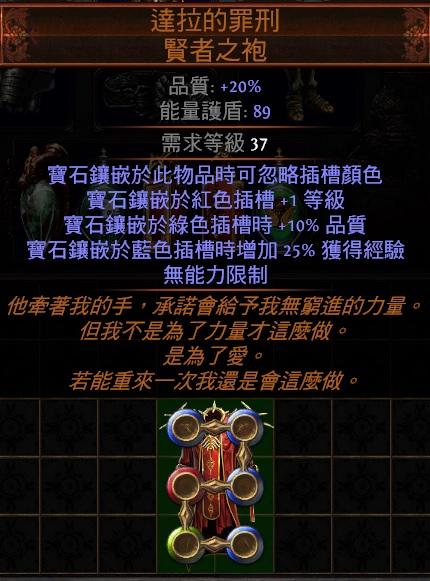 道具 😊幸運PoE😊6L達拉的罪刑(寶石紅色+等級、綠色+品質、藍色+經驗)