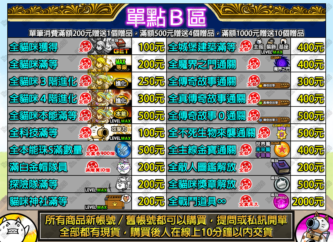 3.若發生誤鎖需要協助救援請提供完整誤鎖截圖且交易紀錄不得有其他貓咪大戰爭賣家的交易紀錄