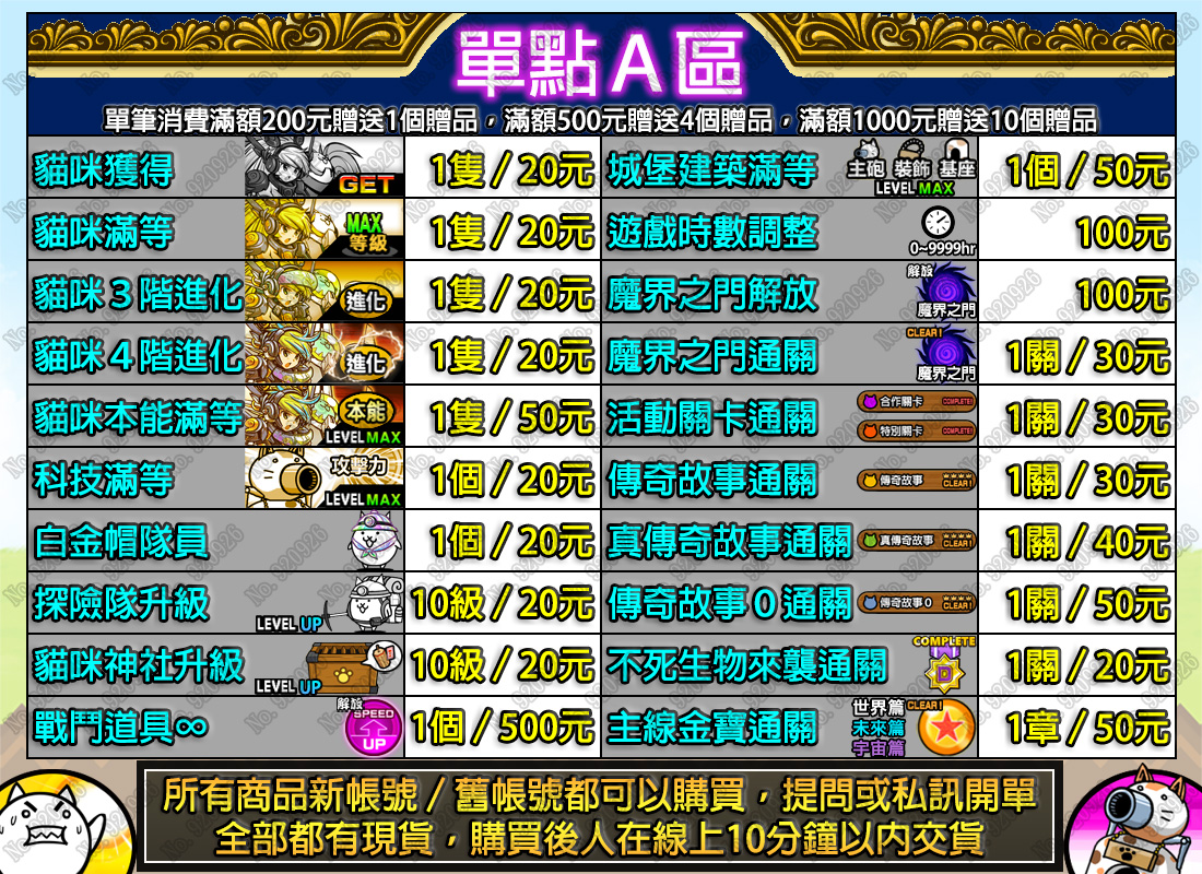 3.若發生誤鎖需要協助救援請提供完整誤鎖截圖且交易紀錄不得有其他貓咪大戰爭賣家的交易紀錄