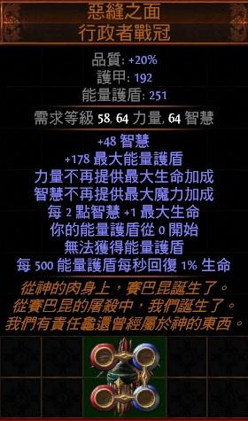 惡縫之面( 每500能量護盾每秒回復1%生命 )已升級