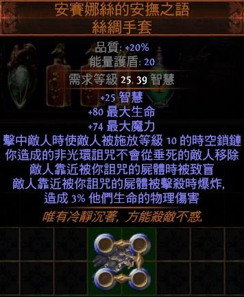 安賽娜絲的安撫之語(擊中敵人施放等級10空鎖鏈+致盲+爆炸)