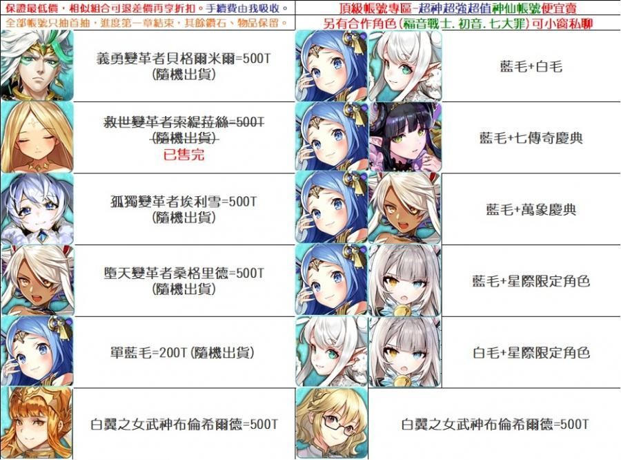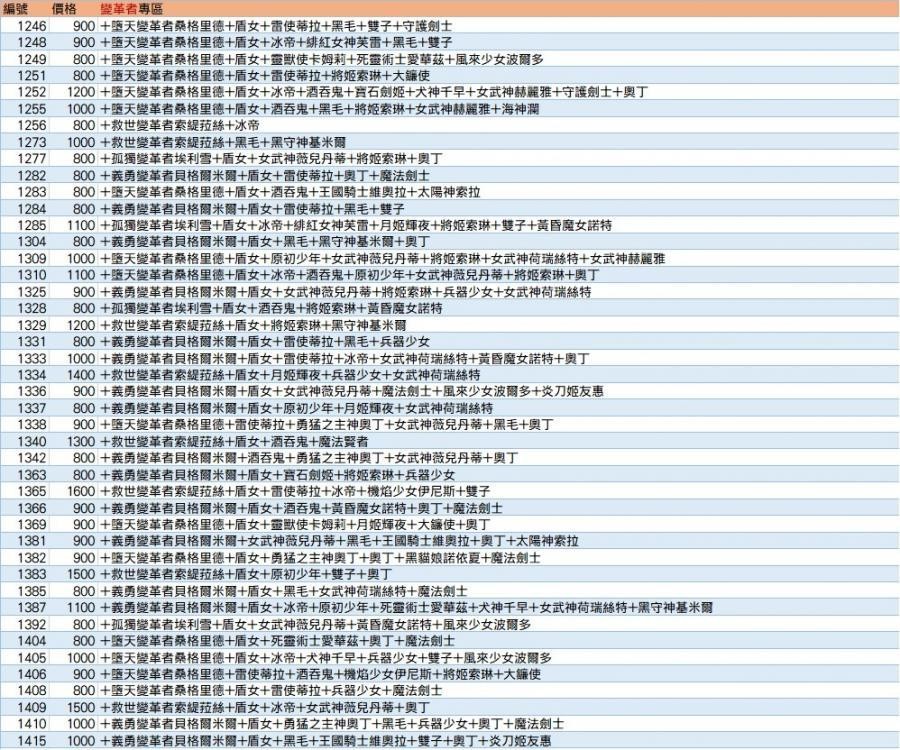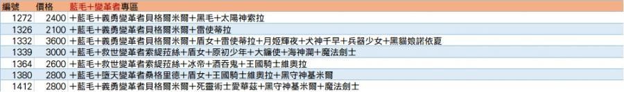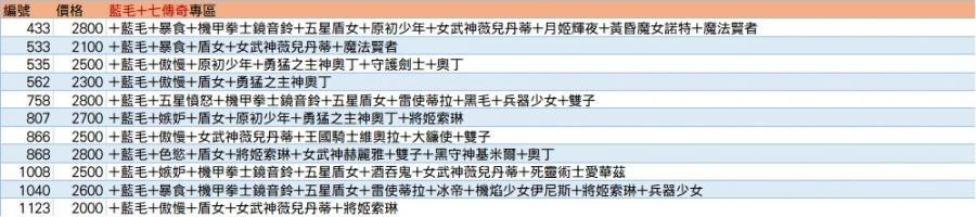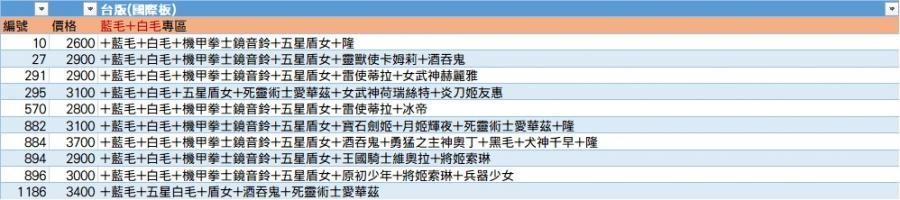 組合內只列出限定卡池中的限定角色(ex.藍毛.白毛.七傳奇.萬象慶典等角色)