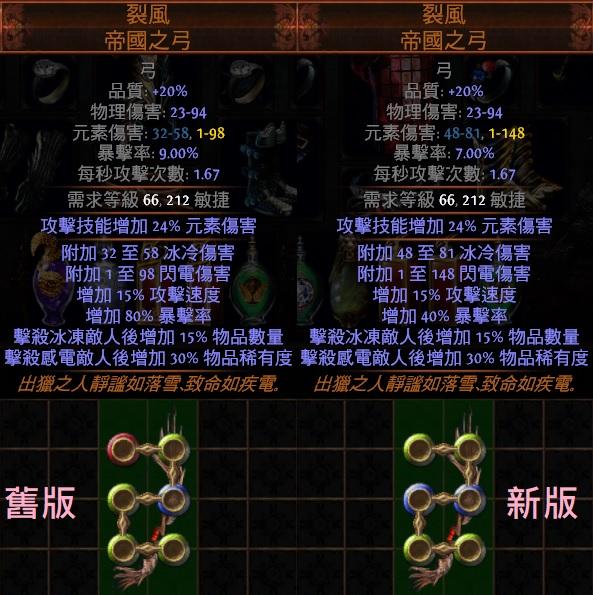 道具 😊PoE😊6L傳奇-裂風.帝國之弓(冰冷、閃電傷害+攻速+暴率+物品數量)