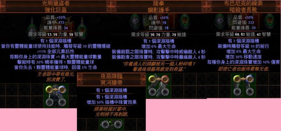 道具 😊PoE😊傳奇-光明獵盜者、陵拳、布巴尼克的線索、夜惡降臨(2個深淵珠寶插槽
