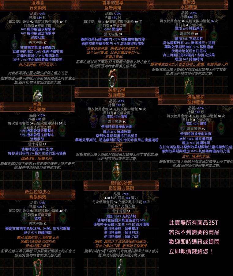 道具 😊PoE😊追魂者、魯米的靈藥、傷胃酒、禁果、神聖哀悼、滿溢聖杯、奇亞拉的決心