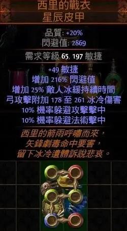 道具 😊幸運PoE😊6L傳奇-西里的戰衣.星辰皮甲(弓附加冰冷傷害+攻擊法術閃避)
