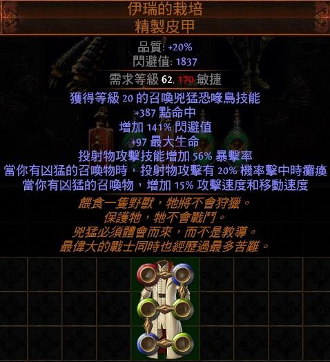 道具 😊幸運PoE😊6L傳奇-伊瑞的栽培.精製皮甲(召喚物攻擊+癱瘓、流血、中毒)