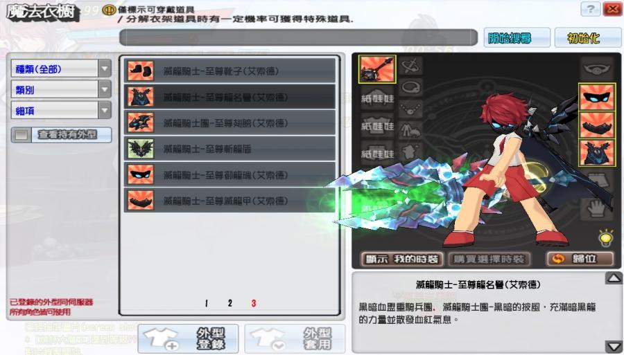 艾索德 冰機時裝 滅龍騎士-闇血武器+至尊右3飾品(NO下衣飾品) 4000T