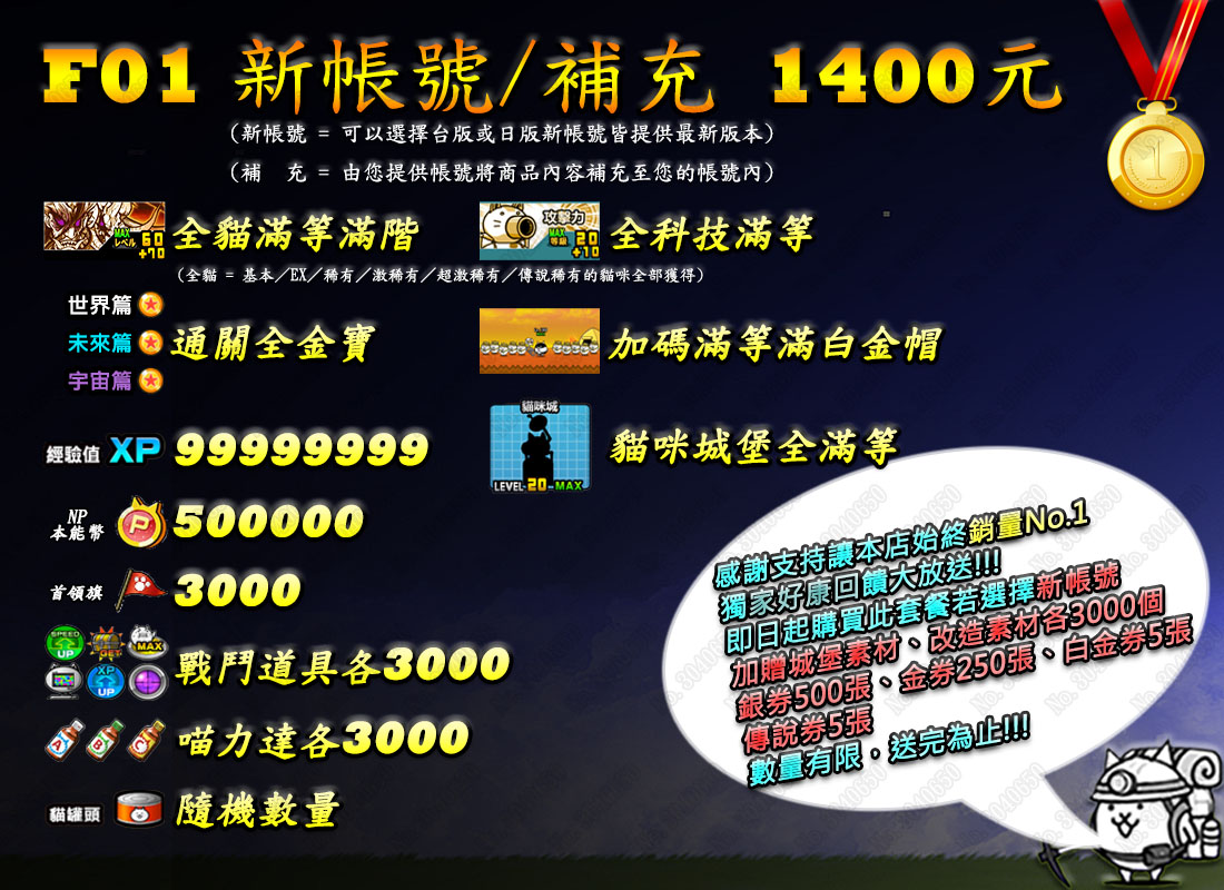 →F01全貓補充←