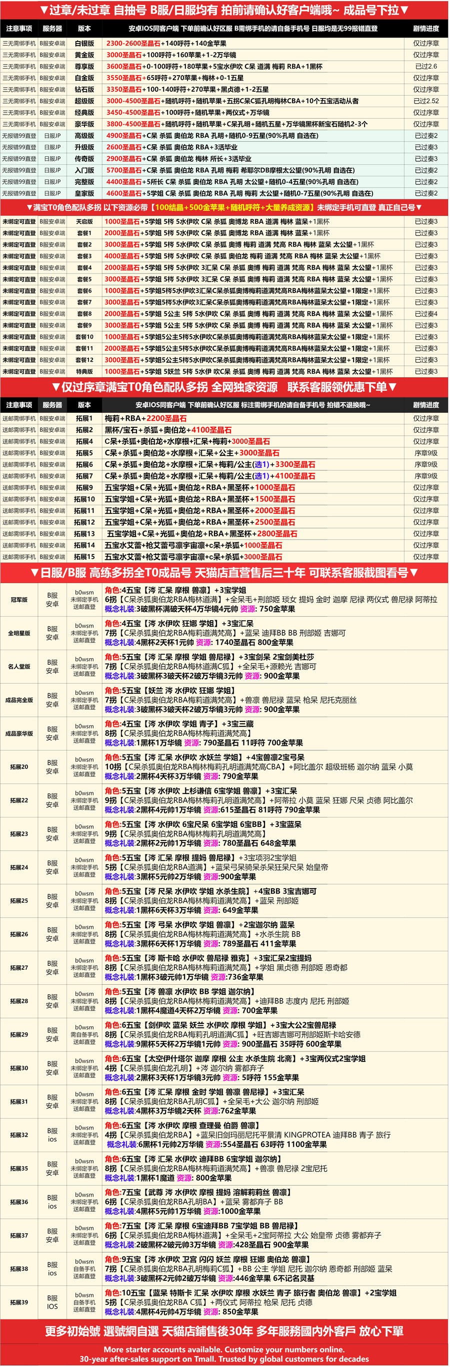 遊戲帳號內容已清楚打出來 沒打出來的皆為隨機附送 不要自己亂加東西 資源 再說帳號上怎沒有 後續出現問題 一律以賣家公布為主 介意勿買 帳號一律不幫留 專屬是方便購買 不是幫留 如果下單後 沒帳號 一律換組或不互評退款 購買表示同意 介意勿買 若需綁定個人訊息或遊玩 如手機 身分證 或是 下載遊戲 VPN 等 請自行綁定或GOOGLE 不能綁定者或無法遊玩者 無法退款 介意勿買 温馨提醒:本店杜絕修改,敬请安心購買,請杜絕修改商家,以避免導致自身錢貨兩空,關心您 下標繳費後,會在交易留言板留帳密給買家。 為避免交易糾,請務必確認賣場商品再下標,一旦購買繳費後,均不接受取消交易哦,