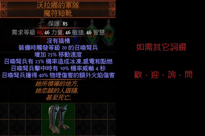 道具 POE😊星光聖杯保護、沃拉娜的軍隊召喚弩兵沃拉娜的醞釀奧爾羅斯不破環之靈藥