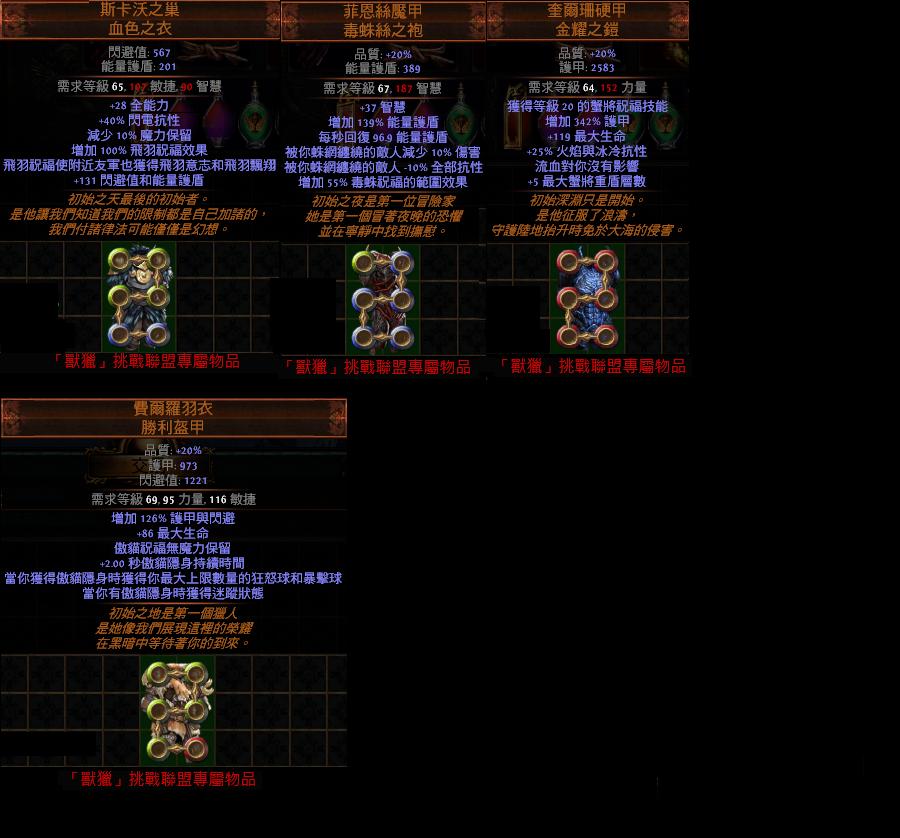 道具 【標準】 『獸獵胸甲』6L費爾羅羽衣(貓衣*)、斯卡沃之巢、奎爾珊硬甲、菲恩絲魘甲
