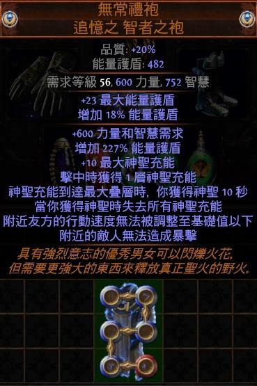 道具 【PoE】 6L傳奇-無常禮袍.追憶之智者之袍(神聖效果造成更多元素傷害+免疫詛咒