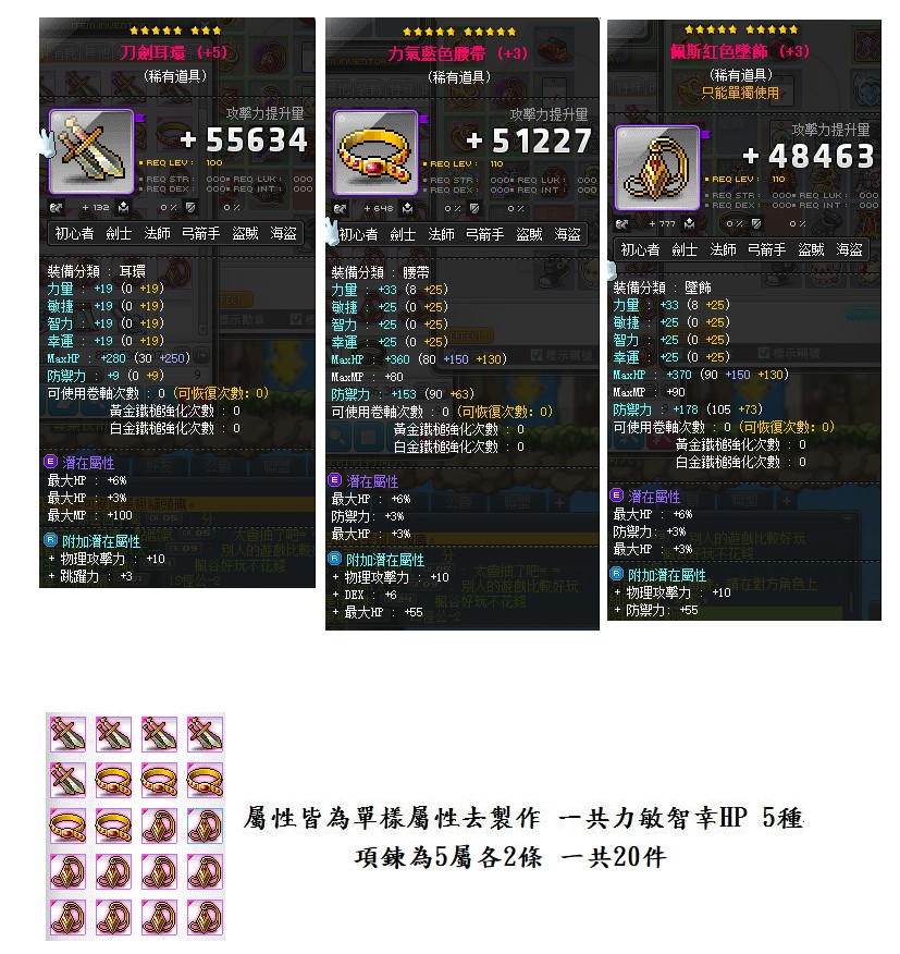 10星9%附加10攻無限交易全職業戰地飾品 20樣 ﹩2000