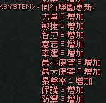 單獨開啟:力量敏捷智力意志幸運+5、最小傷害+8、最大傷害+8、暴擊率+1、保護+3、防禦+3