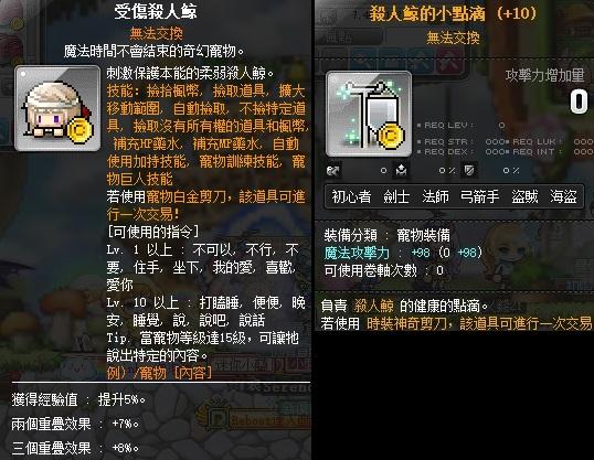 道具 ★小嫩寶實體區★ 永久寵物受傷殺人鯨(含剪) +全榮耀魔裝備(含剪)
