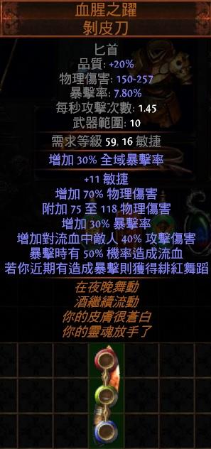 立即將傳奇-血腥之躍(暴擊時 獲得緋紅舞蹈+流血增加傷害)